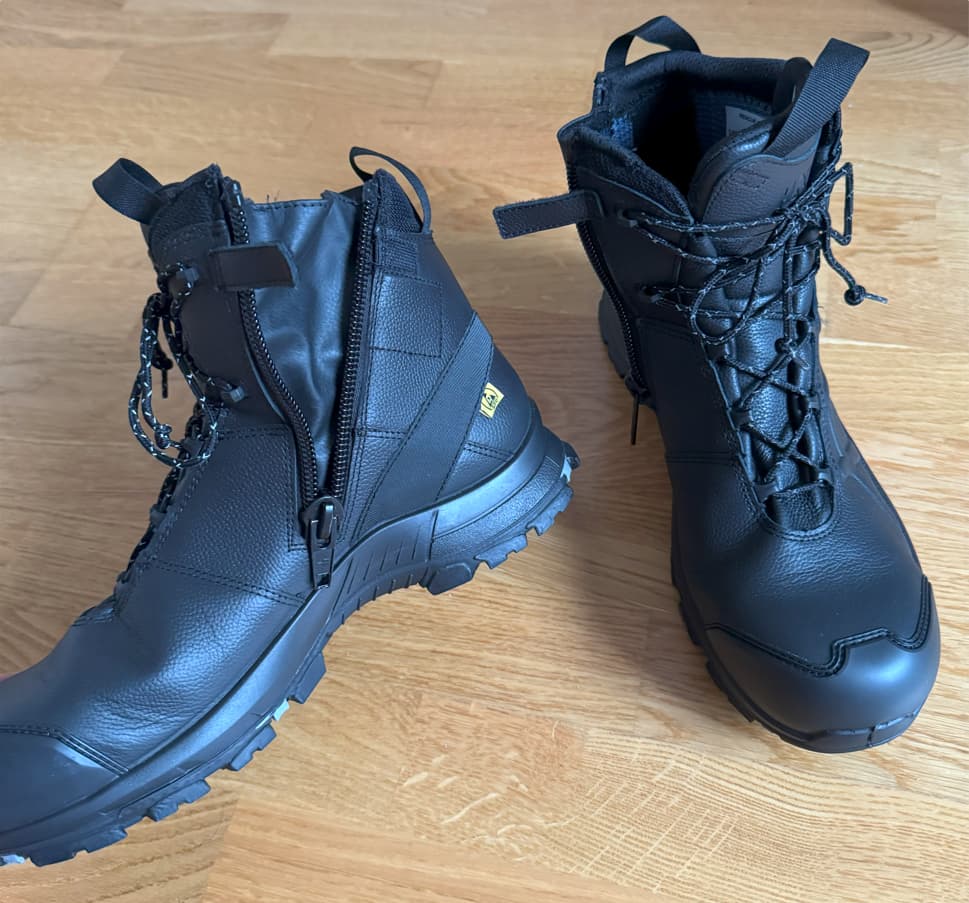 Die letzten fünf Jahre habe ich die HAIX R91 getragen. Mit denen bin ich ehrlich gesagt nicht wirklich zufrieden. Für den Preis hätte ich mir mehr erwartet. Die Sohle ist nicht besonders bequem, weshalb ich eine angepasste Sohle von Hervis hineingetan habe.