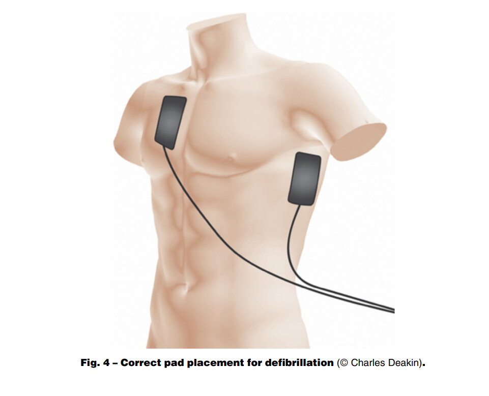 Place pads in the conventional antero-lateral (sternal-apical) position.